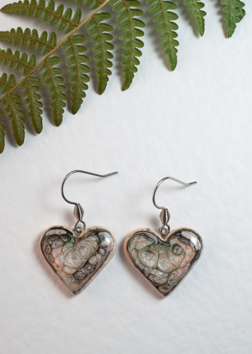 Fiecare pereche de cercei din colecția Armonia este unică, realizată manual dintr-un material natural (lut uscat la aer), pictată cu vopsele speciale și finisată cu rășină, pentru rezistență și strălucire.