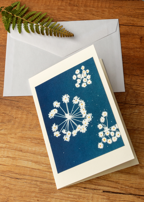 Fiecare imagine este realizată manual prin tehnica cianotipiei, folosind plante reale imprimate pe hârtie sub razele soarelui.
