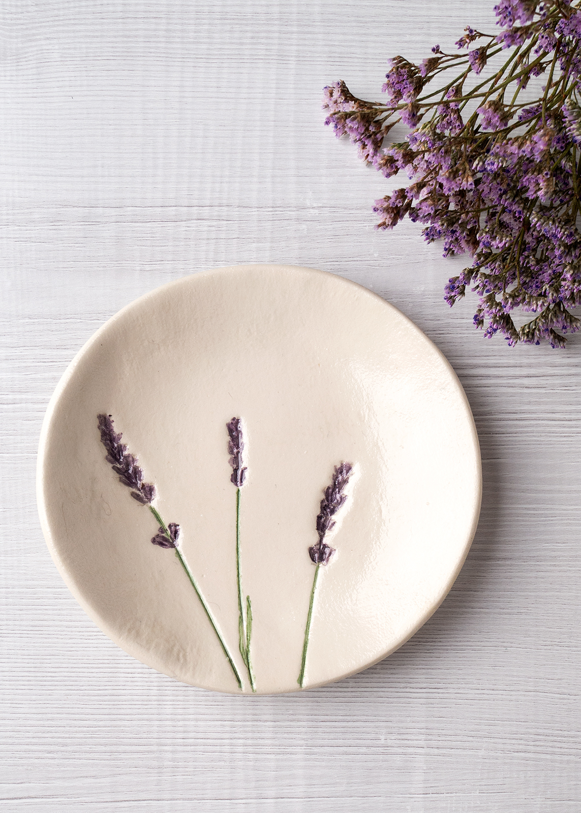 – Farfurioară realizată manual din lut cu uscare la aer.