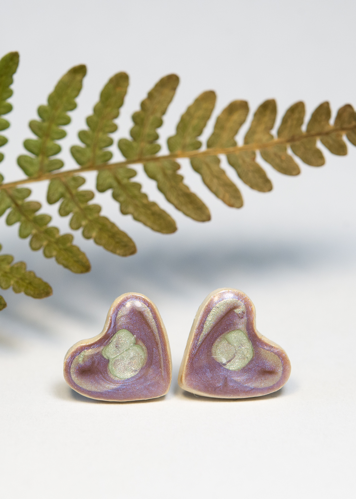 Fiecare pereche de cercei din colecția Armonia este unică, realizată manual dintr-un material natural (lut uscat la aer), pictată cu vopsele speciale și finisată cu rășină, pentru rezistență și strălucire.